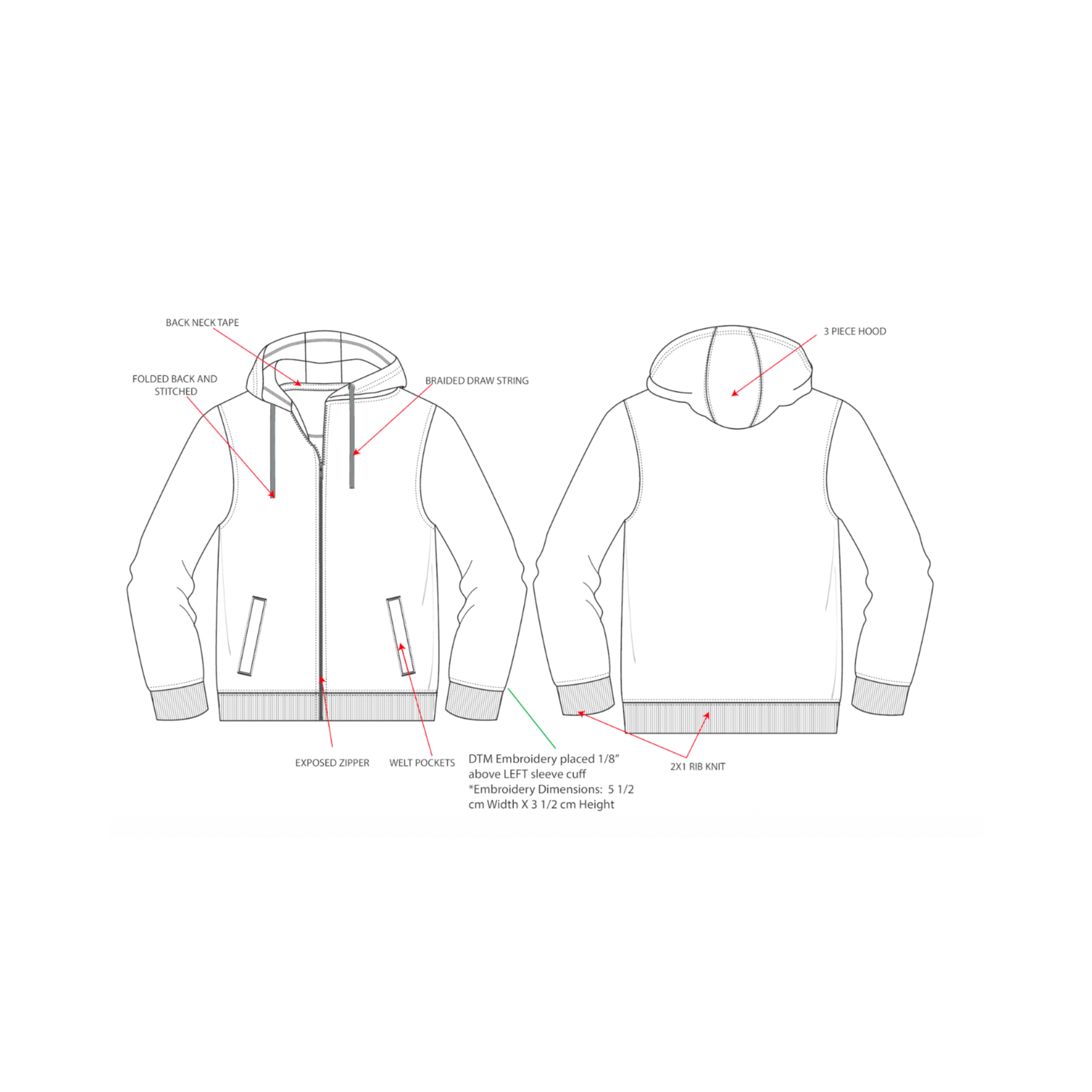 | Construction | Unisex Fleece Full-Zip Hooded Sweatshirt |